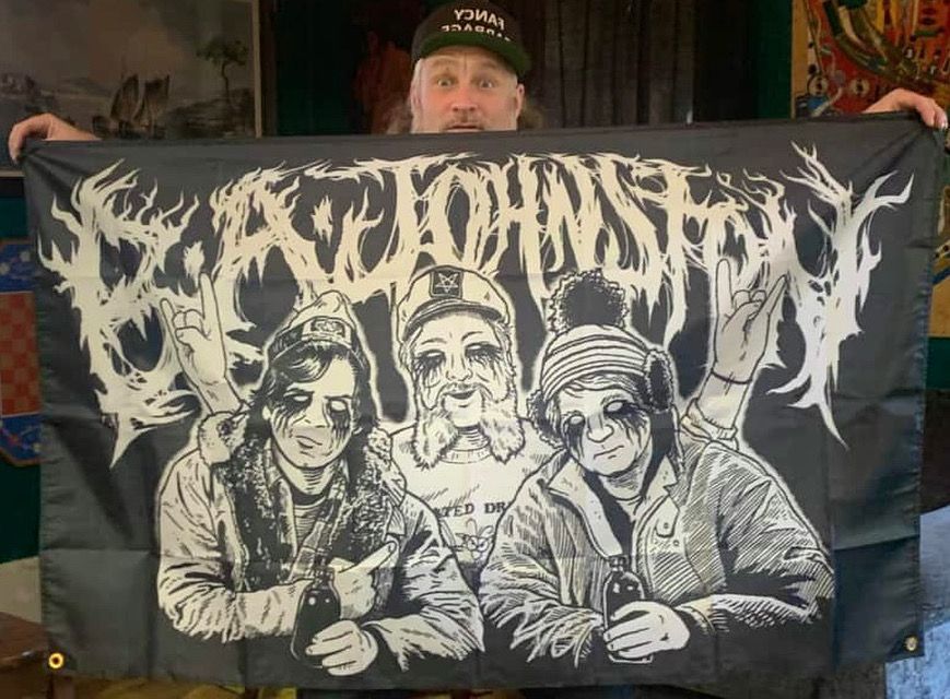 Custom merch flags printed for Canadas favourite traveling music geezer BA Johnston