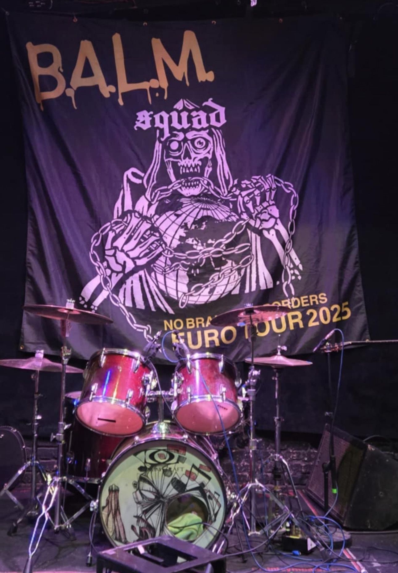 8x8 foot tour backdrop printed for Ottawa Punkers B.A.L.M. Squad for their 2025 Euro Tour!
